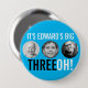 Sky blue, black, and white 30th birthday button pin badge. 30 years badge customize with your own name and three photos one from each decade! Great for parties or to add to gifts or cards. Other matching items are available. Unique design by Sarah Trett for www.mylittleeden.com only on Zazzle