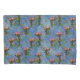 Sky blue cloudy soft look with Pink-Flamingos & greenery plants and pink flowers, repeat design