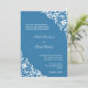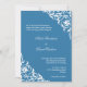Yes, you can print on the back of your invitation for free! Most designs already have a corresponding design on the back that can be personalized using the Design Tool and going to Layers. This is a great way to communicate more information or further personalize your Sky Blue Corner Scroll Script Elegant Wedding Invitation. The option is really up to you.