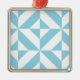 Sky Blue Geometric Deco Cube Pattern Metal Ornament