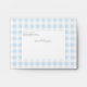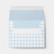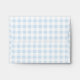Soft sky blue gingham check is a charming way to celebrate a new baby with this matching custom envelope featuring a pre-printed return address and matching printed blue interior.