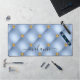 Sky Blue Gold Diamond Tufted Custom Name Desk Mat