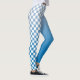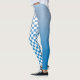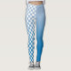 Modern asymmetrical design features a light to medium blue and white checkered pattern on one leg and a light to medium blue gradient on the other. The checkered pattern has white next to colored squares. Add this fun, eye-catching piece to your wardrobe.