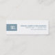 Here is a modern take on a monogram on a convenient skinny-size business card. A pale steel blue stripe is cropped off on the left side to contain a monogram. A business name and main contact information prints to the right. The reverse displays a name, title and contact information knocked out of the blue panel. A contemporary look for someone in the creative field, marketing, communications, advertising or a consultant. Available in alternate colors with matching products.