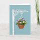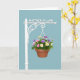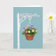 This design shows a single hanging flower basket set against a smooth sky-blue background, keeping the focus calm and affectionate ❤️. Near the top, the words “MOTHER IN LAW” are placed in crisp white lettering that stands out clearly against the blue. Below the text, a white decorative pole with gentle curling details stretches outward like an inviting arm. From it, thin white chains hold a terracotta-colored pot that hangs neatly in the open space. The basket is filled with layered blossoms in pink, yellow, purple, and white, nestled closely together as if arranged with extra care for someone cherished. Dense green leaves spill around the flowers, giving the bouquet a full, tender look, like a quiet gesture of closeness 🌼. The even lighting keeps shadows soft and lets the smooth pot, the bright petals, and the ornate white metalwork show fine detail.