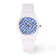 A repetitive pattern spreads across a sky blue background on this fun watch.
