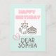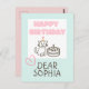 Sky blue&Pink Happy Birthday Cat Postcard