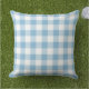 Sky Blue White Gingham Plaid Check Outdoor Pillow