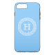 Sky Blue Wht Greek Key Rnd Frame Initial Monogram Case-Mate iPhone Case