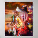 Native American fancy dancer flies along with a Golden Eagle spirit. Symbols: Perfection, Milky Way, Great Mystery, Four Directions.