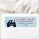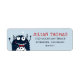 Cute monster themed return address labels feature vibrant red and navy blue lettering on a sky blue background with cute smiling monster illustration. Designed to coordinate with our Little Monster birthday collection.