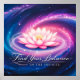 Faint constellations and shooting stars add subtle movement and dynamic detail, further enriching the cosmic atmosphere. Centered below the lotus, the elegant script "Find Your Balance in the Infinite" reminds the viewer of the infinite possibilities for inner peace and alignment.