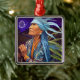 Christmas ornament with stunning AI generated fantasy artwork features "The Sky Road Walker" a mystical Native American portrait of spirituality in fantastical colors.