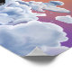 "Skybound Serenity" depicts four skydivers leaping into a world of vibrant, puffy clouds beneath a breathtaking sunset. The piece captures the exhilaration of flight and the peaceful beauty of nature, blending the rush of adventure with the calming colors of the sky.