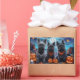 Unleash the spooky spirit with this eerie Halloween design featuring a pack of dogs under a dark, moonlit sky, surrounded by flying bats and glowing pumpkins. Perfect for those who love a touch of frightful fun with their furry friends!