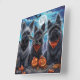 Unleash the spooky spirit with this eerie Halloween design featuring a pack of dogs under a dark, moonlit sky, surrounded by flying bats and glowing pumpkins. Perfect for those who love a touch of frightful fun with their furry friends!