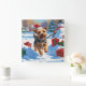 Skye Terrier Running in Snow with Christmas Hat Square Wall Clock