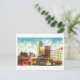 This postcard is a reproduction of a vintage travel postcard showing the skyline of Seattle, Washington.