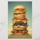 Huge tall delicious burger as high as a skyscraper. For the really hungry people