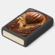 This highly dimensional lighter design features an elaborate, paneled hot air balloon suspended over a rugged, carved canyon landscape. The image shows a winding path or river running through the deep valley. The words "SKYWARD JOURNEY" are embossed on a plaque at the bottom of the scene. The entire image is framed by a highly detailed, ornate arched border. The monochromatic color scheme of browns, tans, and black gives the artwork a striking carved wood relief appearance. The design is set on a matte black lighter casing. The design may look real due to the high detail in the artwork.