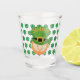 Slainte smiling Irish leprechaun and shamrocks shot glass