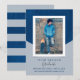 Modern graduation photo announcement with a geometric slanted background. The blue portion of the background has a rich texture. The photo takes the center stage with a wide white border and a subtle shadow underneath. Unisex design perfect for a high school or college graduation.