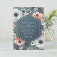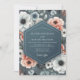 An enchanting design featuring delicate slate blue anemones and soft peach blossoms. This romantic arrangement evokes a sense of timeless elegance. The detailed floral illustration creates a captivating and moody atmosphere.
