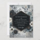 A moody and elegant design featuring deep slate blue blooms and subtle hints of white flowers against a soft, atmospheric background. This design evokes a sense of romantic mystery and sophisticated charm, perfect for a dramatic occasion.