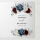 Slate Blue Burgundy White Ivory Floral Wedding Tri-Fold Announcement