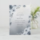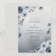 Plain white envelopes are included with paper invitations and will come to fit the invitation size you select. If you don’t need the envelopes, you may choose to not receive them by selecting the dropdown below "Envelopes" and choosing "None." If you’d like to have a design on your envelopes, you can browse all of these available envelopes to find the design that complements your Slate Blue Ethereal Winter Wedding Invitation.