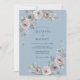 Delicate floral arrangements in muted rose and dusty blue hues adorn this serene design. The soft watercolor effect creates an ethereal and romantic mood, perfect for a tranquil celebration. The prominent color palette evokes a sense of gentle elegance.