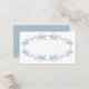Elegant white wedding place card / escort card, with a slate blue oval flourish edged text area. Personalize by hand for each guest at your wedding.