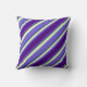 This throw pillow design features a pattern of stripes having colors like slate blue, indigo, green, and light yellow.