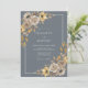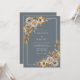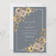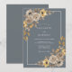 This design features a moody slate blue backdrop that beautifully contrasts with cream-colored roses and golden-hued anemones. Delicate autumn foliage in shades of mustard and ochre creates a refined seasonal aesthetic. The hand-painted watercolor style offers a sophisticated and timeless look for a formal event. The muted color palette evokes a serene and elegant atmosphere.