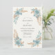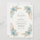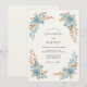 This botanical artwork showcases clusters of slate blue roses and warm tan leaves. The delicate watercolor illustrations are artistically arranged to create a balanced and sophisticated look. Each petal and leaf is rendered with fine detail, offering a romantic aesthetic against the neutral cream background. This design is ideal for a timeless ceremony regardless of the season.