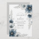 Delicate blooms in a rich slate blue hue are artfully arranged with subtle grey foliage, creating an atmosphere of refined elegance. This design evokes a mood of serene romance, perfect for an unforgettable union. The artistic brushstrokes lend a timeless, ethereal quality to the composition.
