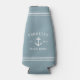 These cool personalized beach house bottle coolers feature your family name on a coastal slate blue background, with your year established and a nautical anchor illustration. Rope stripe detailing at the top and bottom completes the design for a rustic look.