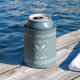 These cool personalized lake house can coolers feature your family name on a slate blue background, with your year established and a pair of oars. Rope stripe detailing at the top and bottom completes the design for a rustic lakeside look.