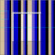 This design features a slate blue, tan, black, and blue colored striped pattern.
