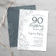 Slate Blue White Floral 90th Birthday Party Invitation