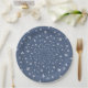 White stars cosmos universe on a slate blue background. A unique tableware option for your next retirement or space themed party.