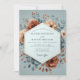 An artistic display of muted elegance unfolds with this beautiful design. Softly painted blooms in warm sienna and terracotta tones emerge from a serene slate blue background. Delicate stems and ethereal foliage create a composition that is both romantic and sophisticated, perfect for a refined autumn or winter union.