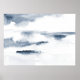 Poster art print original abstract watercolor painting in slate blue and white.