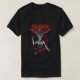 My 11 yo wore adult XL (5’7” 165#). The 8yo is small framed. She wore adult small and tied it in the back. Grandma wore adult large with long sleeve shirt underneath. Tall girl adult medium. Dark haired male adult large. Good quality dark Heather gray, Gildan brand shirt. -it was next up from basic choice and cost about $20 per shirt. Not too thick or thin. Washed and dried well, no major shrinkage. Not see-through. Can wear a bra under it fine. Screen print is just as shown and well done, front and back.