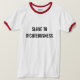 The product was as advertised. The message is succinct and is an eye-catcher. This shirt gets a heap of feedback from onlookers. Most ask you to stand still while they finish reading the definition. They then either give you the thumbs-up or nod any walk away. Either way, its a real conversation starter and so far, no one has disagreed enough with the print to verbalize. The material is fairly light, but the print is stable enough to withstand washes and some activity. A fair deal. Readable and durable.
