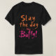 Channel your inner warrior with this empowering design inspired by the iconic Buffy the Vampire Slayer. Featuring bold typography and striking imagery, this design encourages you to tackle your challenges head-on and "slay the day." The powerful message evokes confidence and determination, perfect for fans of Buffy and anyone who wants to face their day like a true champion. Ideal for t-shirts, posters, and other products to remind you that every day is worth fighting for.
