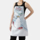 Cute watercolor style sledding snowman chef with snowball platters on this holiday baking or cooking apron personalized with your name, perfect for whipping up baked goods or party fare for Christmas get-togethers.