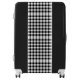 Stylish customizable luggage features a sleek black and white gingham plaid. The checked pattern is made of black, white, and grey squares with three wider spaced intervals adding character to the design.