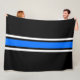 Sleek Bright Blue White Racing Stripes On Black Fleece Blanket