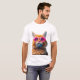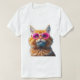 Elevate your look with this sophisticated T-shirt. It features a photo-realistic 3D orange cat in pink retro sunglasses, masterfully rendered against an electric blue backdrop with subtle shadows for a sleek, high-end feel.